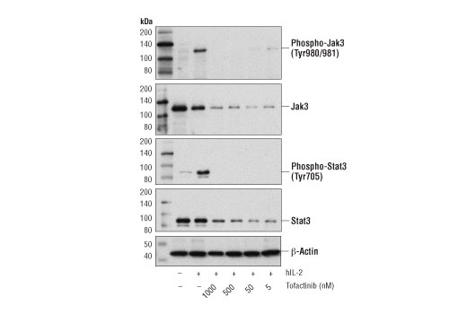 Tofacitinib is supplied as a lyophilized powder. For a 50 mM stock, reconstitute the 10 mg of powder in 640.27 of μl DMSO. Working concentrations and length of treatment can vary depending on the desired effect, but it is typically used at 5-500 nM for 1-72 hr.