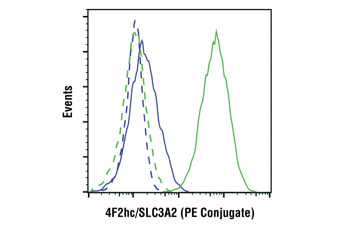 4F2hc/SLC3A2 (D3F9D) Rabbit Monoclonal Antibody (PE Conjugate) recognizes endogenous levels of total 4F2hc/SLC3A2 protein. This antibody conjugate is predicted to detect multiple isoforms of 4F2hc/SLC3A2.