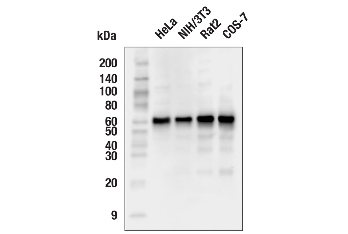 Akt (pan) (40D4) Mouse Monoclonal Antibody (Biotinylated) detects endogenous levels of total Akt protein. This antibody does not cross-react with other related proteins.