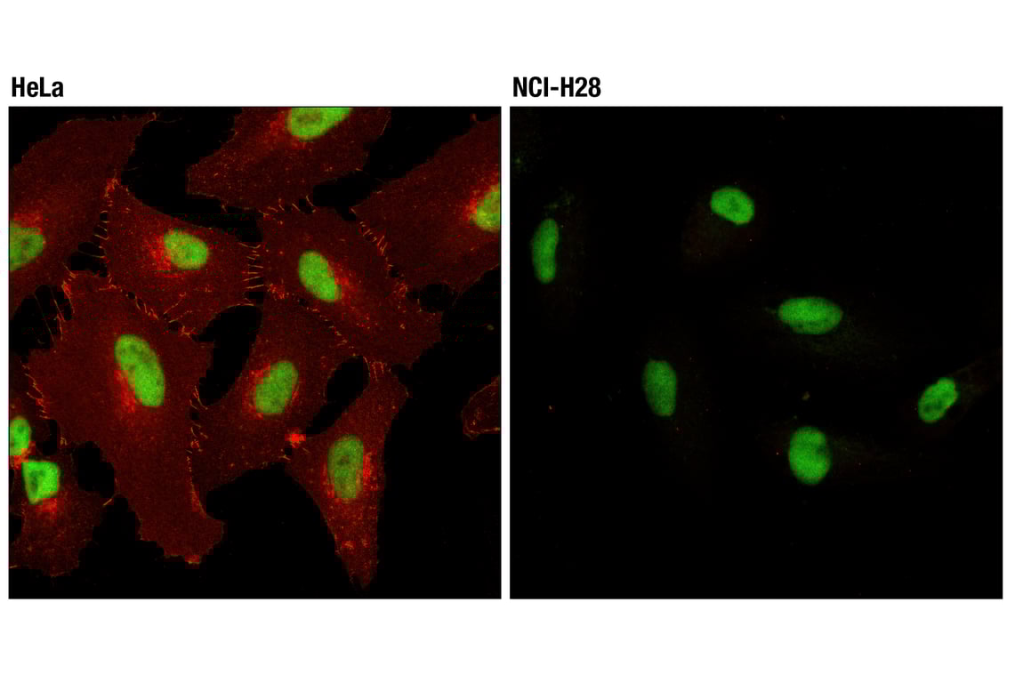 The antigen sequence used to produce this antibody shares 100% sequence homology with the species listed here, but reactivity has not been tested or confirmed to work by CST. Use of this product with these species is not covered under our Product Performance Guarantee.