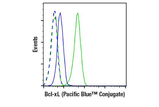 Bcl-xL (54H6) Rabbit Monoclonal Antibody (Pacific Blue™ Conjugate) detects endogenous levels of total Bcl-xL protein. This antibody conjugate does not cross-react with other Bcl-2 family members.