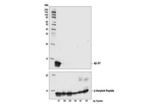 beta-Amyloid (1-37) (D2A6H) Rabbit Monoclonal Antibody (Biotinylated) recognizes the Aβ-37 isoform of the β-amyloid peptides. This antibody does not cross-react with other β-amyloid peptides.
