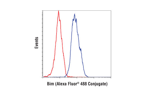 This Cell Signaling Technology antibody is conjugated to Alexa Fluor® 488 fluorescent dye and tested in-house for direct flow cytometric analysis in human cells. This antibody is expected to exhibit the same species cross-reactivity as the unconjugated Bim (C34C5) Rabbit mAb #2933.