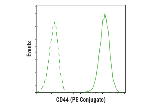This Cell Signaling Technology antibody is conjugated to phycoerythrin (PE) and tested in-house for direct flow cytometry analysis in human cells. The antibody is expected to exhibit the same species cross-reactivity as the unconjugated CD44 (156-3C11) Mouse mAb #3570.