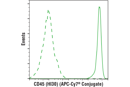 CD45 (HI30) Mouse Monoclonal Antibody (APC-Cy7® Conjugate) recognizes endogenous levels of total CD45 protein. This antibody conjugate detects an epitope within the extracellular domain.