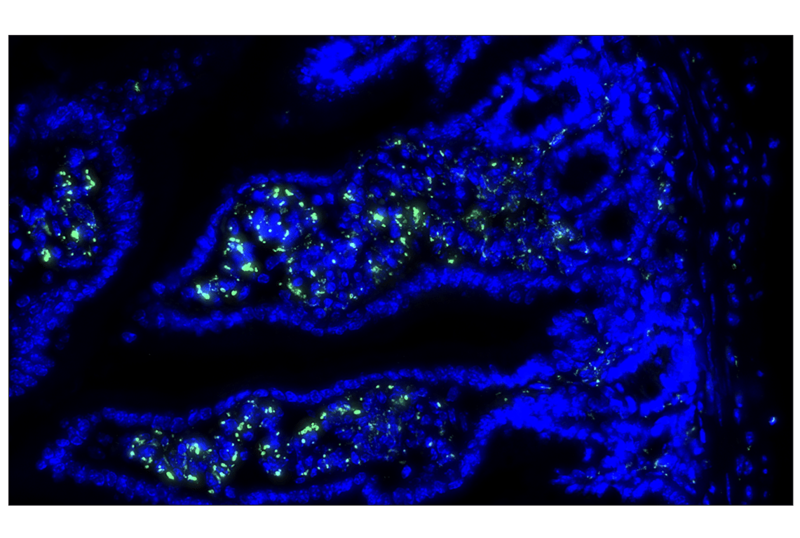 CD68 (E3O7V) Rabbit Monoclonal Antibody (Alexa Fluor® 488 Conjugate) recognizes endogenous levels of total CD68 protein. Staining of uncertain specificity in mouse endometrial epithelium has been observed by immunohistochemistry.