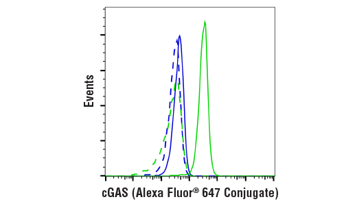 This Cell Signaling Technology antibody is conjugated to Alexa Fluor® 647 fluorescent dye and tested in-house for direct flow cytometric analysis in human cells. This antibody is expected to exhibit the same species cross-reactivity as the unconjugated cGAS (E5V3W) Rabbit mAb #79978.