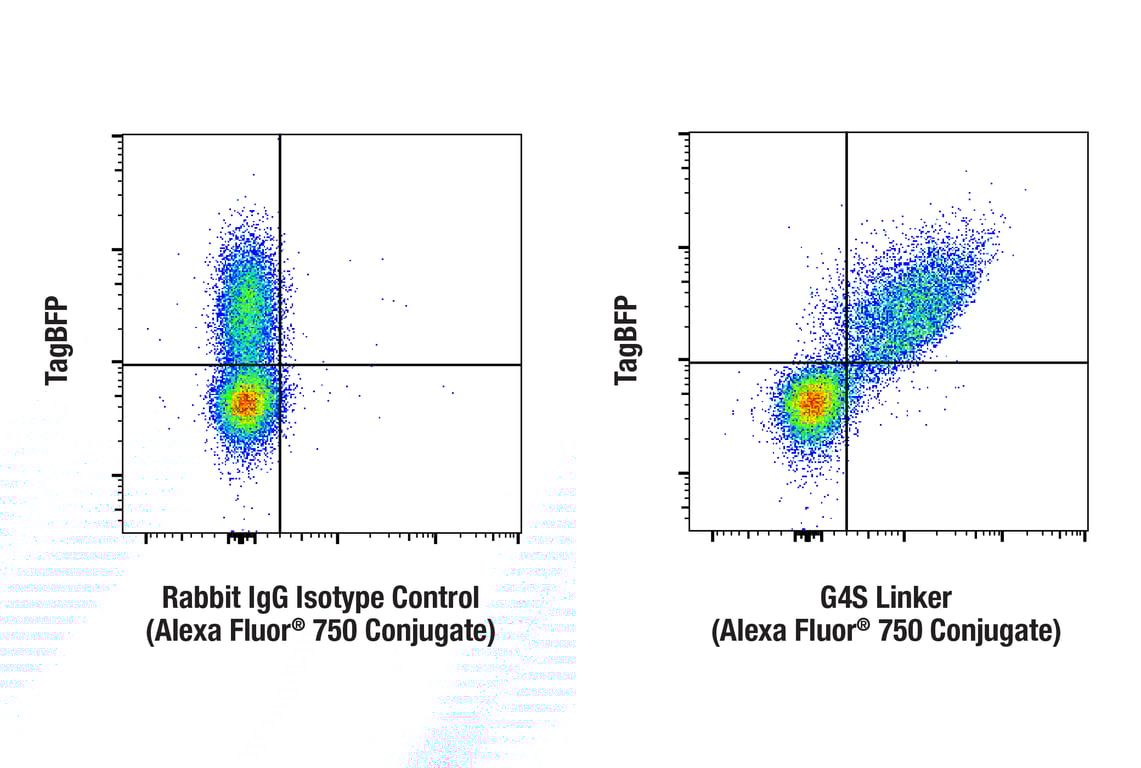 G4S Linker (E7O2V) Rabbit Monoclonal Antibody (Alexa Fluor® 750 Conjugate) recognizes exogenously expressed levels of scFv-based CARs containing a G4S linker.