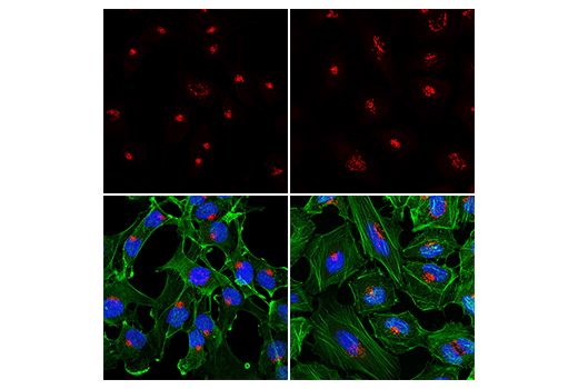 GM130 (D6B1) Rabbit Monoclonal Antibody (Alexa Fluor® 647 Conjugate) recognizes endogenous levels of total GM130 protein. This antibody conjugate may cross-react with a protein of unknown origin at 30 kDa.