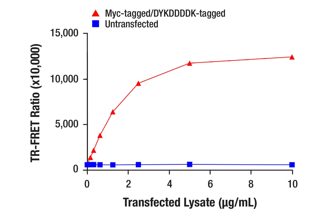 trFluor™ Europium Cryptate conjugated antibodies are ideal for protein-protein interaction assays, pair-based immunoassay technologies, or high-throughput screening where greater sensitivity and quantitative detection is needed. The long fluorescent decay time of Europium Cryptate results in improved signal to background over fluorescent dye conjugates. Methods utilizing Europium Cryptate conjugated antibodies include, but are not limited to, TR-FRET, where Europium Cryptate-labeled donor antibodies are paired with red fluorophore-labeled acceptor antibodies, such as Alexa Fluor® 647 or APC. Please contact us if you require an acceptor antibody clone conjugated to a red dye at a custom concentration, a carrier-free formulation, or a more customized packaging solution.