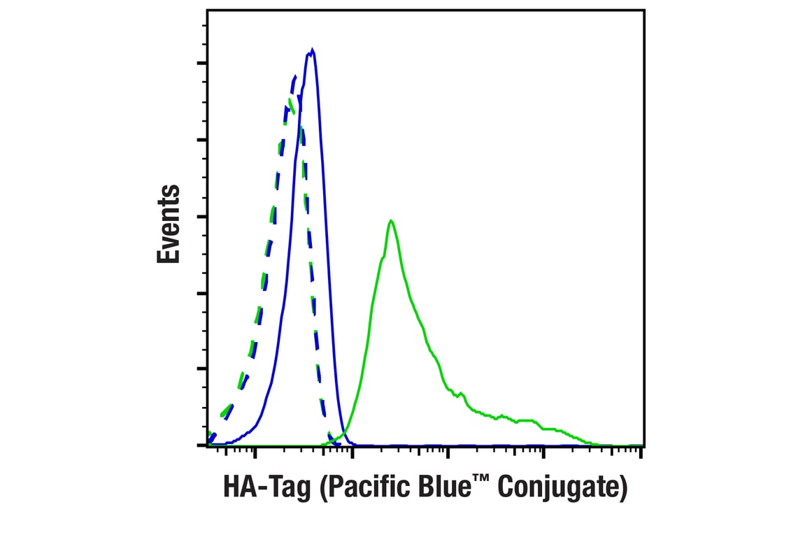 HA-Tag (C29F4) Rabbit Monoclonal Antibody (Pacific Blue™ Conjugate) detects exogenously expressed proteins containing the HA epitope tag. This antibody conjugate may cross-react with a protein of unknown origin ~100 kDa.