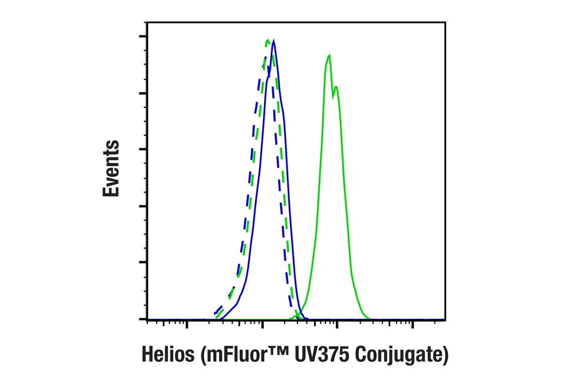 Helios (D8W4X) Rabbit Monoclonal Antibody (mFluor™ UV375 Conjugate) recognizes endogenous levels of total Helios protein.