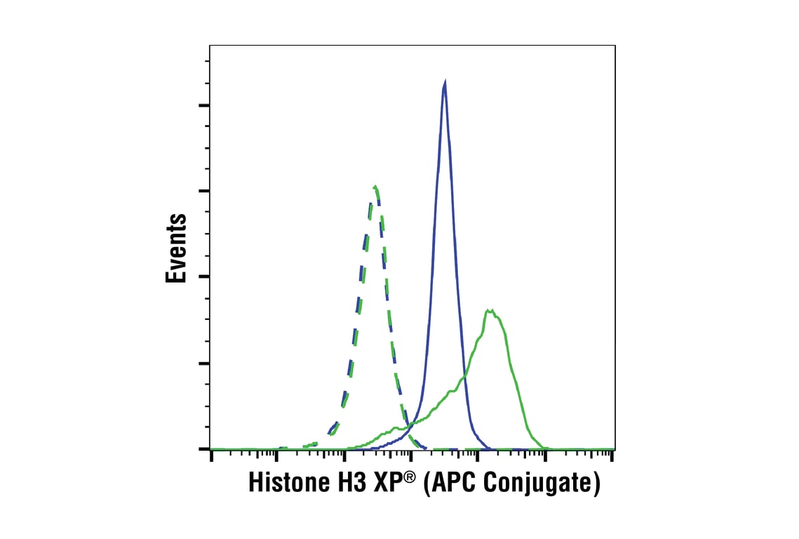 This Cell Signaling Technology antibody is conjugated to allophycocyanin (APC) and tested in-house for direct flow cytometric analysis in human cells. The antibody is expected to exhibit the same species cross-reactivity as the unconjugated Histone H3 (D1H2) XP® Rabbit mAb #4499.