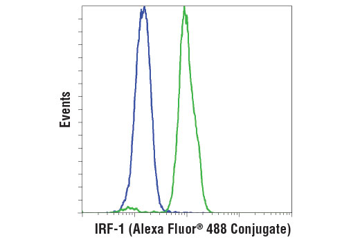 This Cell Signaling Technology antibody is conjugated to Alexa Fluor® 488 fluorescent dye and tested in-house for direct flow cytometric analysis in human cells. This antibody is expected to exhibit the same species cross-reactivity as the unconjugated IRF-1 (D5E4) XP® Rabbit mAb #8478.