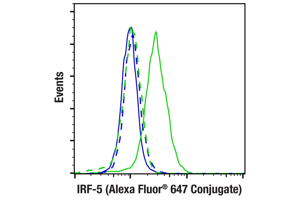 This Cell Signaling Technology® antibody is conjugated to Alexa Fluor® 647 fluorescent dye under optimal conditions. This antibody conjugate is expected to exhibit the same species cross-reactivity as the unconjugated IRF-5 (E9I4Z) Rabbit mAb #96527.