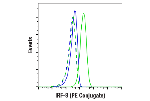 This Cell Signaling Technology antibody is conjugated to phycoerythrin (PE) and tested in-house for direct flow cytometric analysis in human cells. This antibody is expected to exhibit the same species cross-reactivity as the unconjugated IRF-8 (E6J8Q) XP® Rabbit mAb #83413.