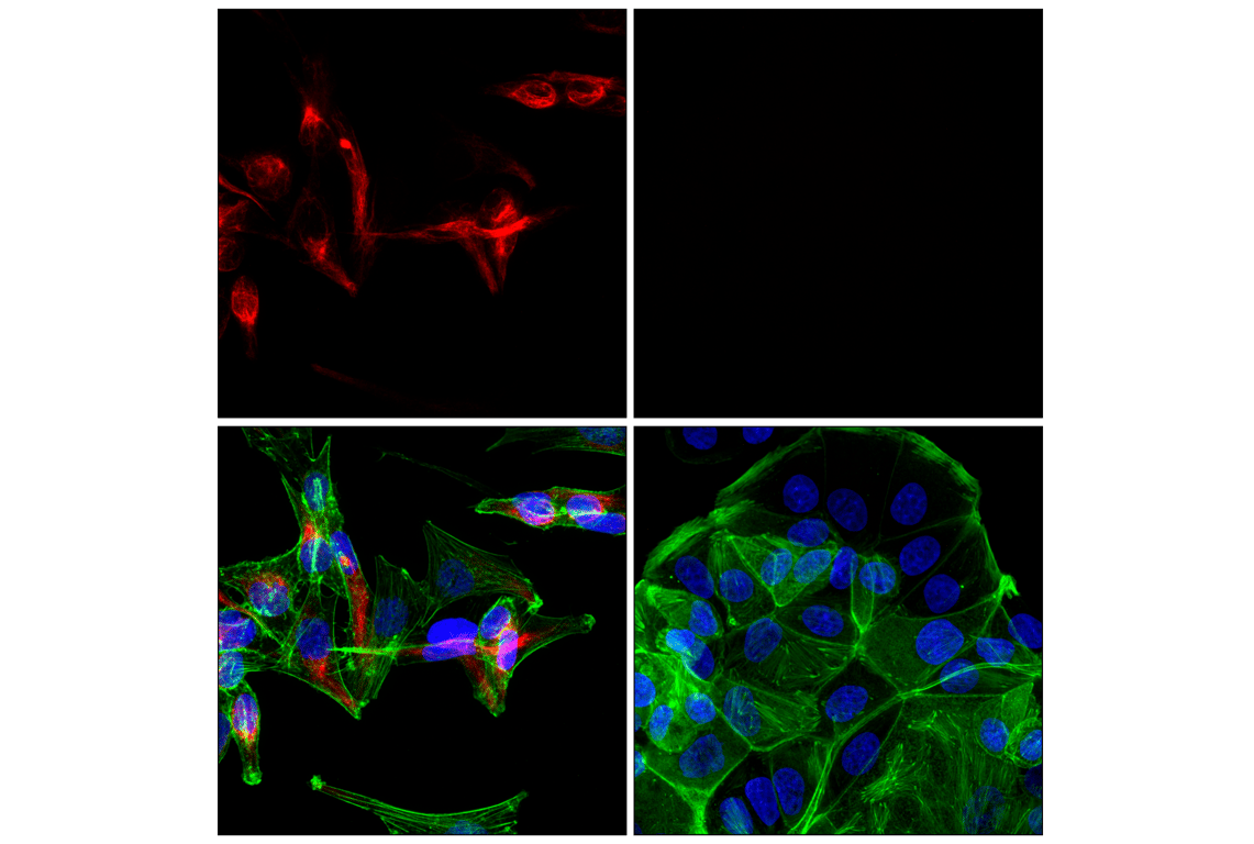This Cell Signaling Technology® antibody is conjugated to Alexa Fluor® 555 fluorescent dye under optimal conditions. This antibody conjugate is expected to exhibit the same species cross-reactivity as the unconjugated Nestin (E4O9E) XP® Rabbit mAb #73349.