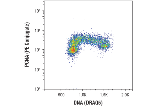 This Cell Signaling Technology antibody is conjugated to phycoerythrin (PE) and tested in-house for direct flow cytometric analysis in human cells. This antibody is expected to exhibit the same species cross-reactivity as the unconjugated PCNA (D3H8P) XP® Rabbit mAb #13110.