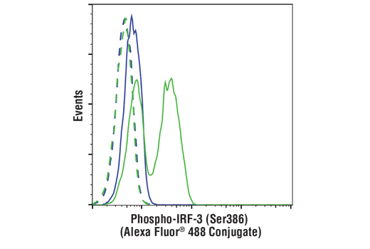 Phospho-IRF-3 (Ser386) (E7J8G) Rabbit Monoclonal Antibody (Alexa Fluor® 488 Conjugate) recognizes endogenous levels of IRF-3 protein only when phosphorylated at Ser386.