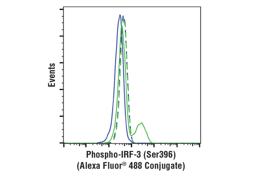 Phospho-IRF-3 (Ser396) (D6O1M) Rabbit Monoclonal Antibody (Alexa Fluor® 488 Conjugate) recognizes endogenous levels of IRF-3 protein only when phosphorylated at Ser396.