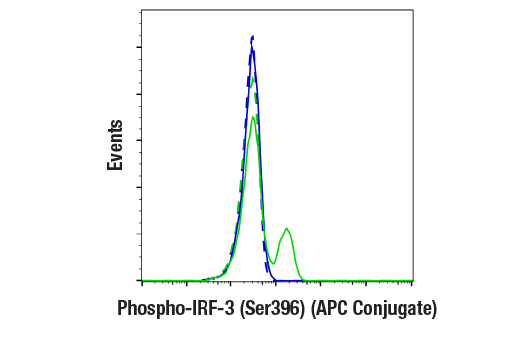 This Cell Signaling Technology antibody is conjugated to allophycocyanin (APC) and tested in-house for direct flow cytometric analysis in human cells. This antibody is expected to exhibit the same species cross-reactivity as the unconjugated Phospho-IRF-3 (Ser396) (D6O1M) Rabbit mAb #29047.