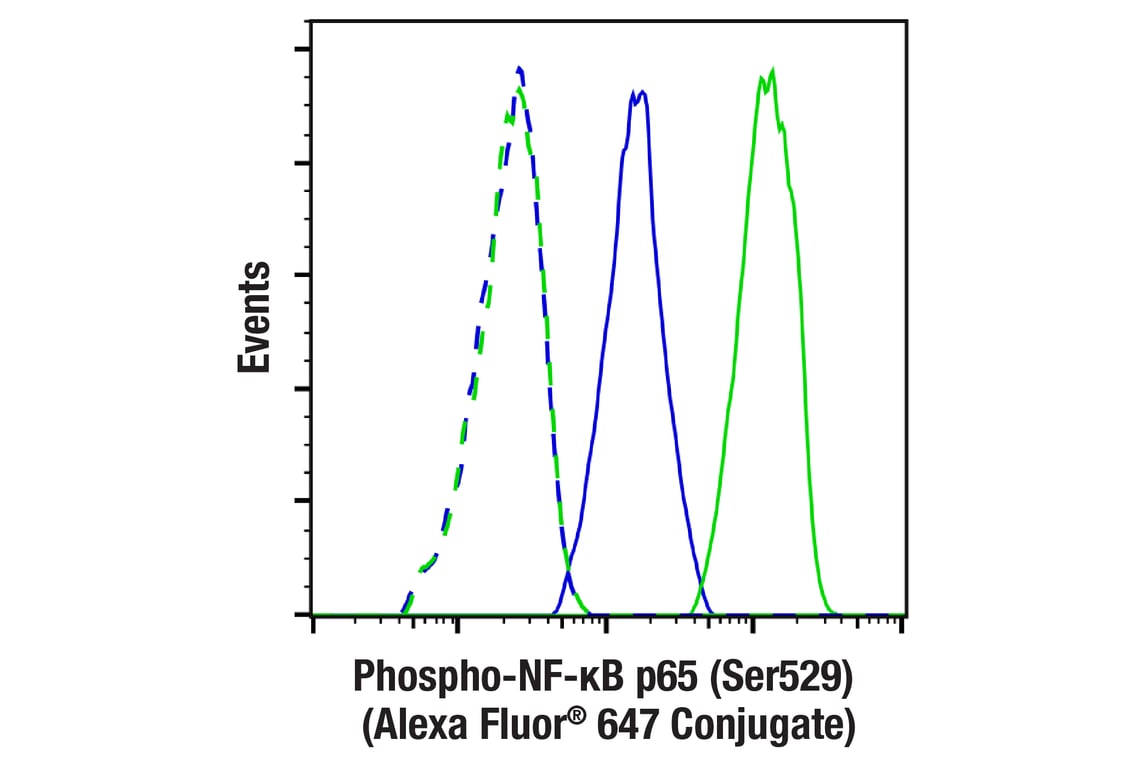 Phospho-NF-kappaB p65 (Ser529) (E3K3J) Rabbit Monoclonal Antibody (Alexa Fluor® 647 Conjugate) recognizes endogenous levels of NF-κB p65 protein only when phosphorylated at Ser529.