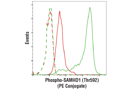 Phospho-SAMHD1 (Thr592) (D7O2M) Rabbit Monoclonal Antibody (PE Conjugate) recognizes endogenous levels of SAMDH1 protein only when phosphorylated at Thr592.