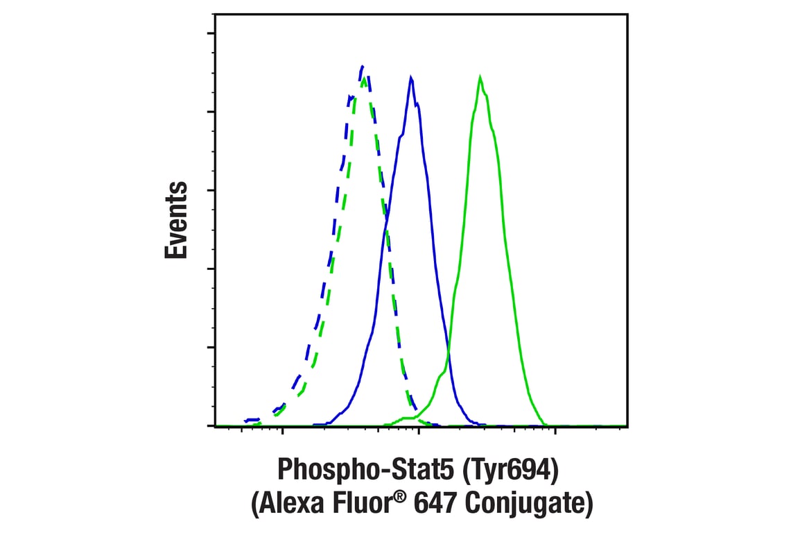 Phospho-Stat5 (Tyr694) (D47E7) Rabbit Monoclonal Antibody (Alexa Fluor® 647 Conjugate) detects endogenous levels of Stat5a only when phosphorylated at Tyr694 and Stat5b when phosphorylated at Tyr699.