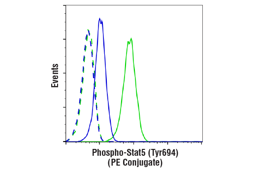 Phospho-Stat5 (Tyr694) (D47E7) Rabbit Monoclonal Antibody (PE Conjugate) detects endogenous levels of Stat5a only when phosphorylated at Tyr694 and Stat5b when phosphorylated at Tyr699.