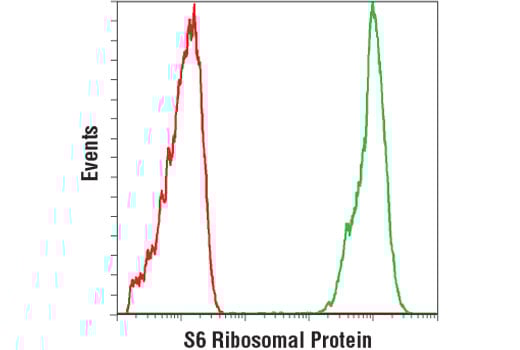 This Cell Signaling Technology antibody is conjugated to phycoerythrin (PE) and tested in-house for direct flow cytometry analysis in human cells. This antibody is expected to exhibit the same species cross-reactivity as the unconjugated S6 Ribosomal Protein (54D2) Mouse mAb #2317.