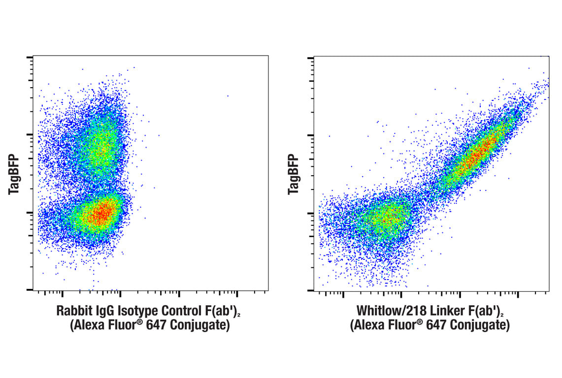 Whitlow/218 Linker (E3U7Q) F(ab')2 Fragment (Alexa Fluor® 647 Conjugate) recognizes exogenously expressed levels of scFv-based CARs containing a Whitlow/218 linker. This F(ab')2 fragment contains no Fc domain and will not exhibit cross-reactivity with Fc receptors.