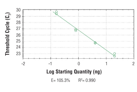 SimpleChIP® Human PTMA Downstream Primers contain a mix of forward and reverse PCR primers that are specific to a region downstream of the human alpha-prothymosin gene. These primers can be used to amplify DNA that has been isolated using chromatin immunoprecipitation (ChIP). Primers have been optimized for use in SYBR® Green quantitative real-time PCR and have been tested in conjunction with SimpleChIP® Enzymatic Chromatin IP Kits #9002 and #9003 and ChIP-validated antibodies from Cell Signaling Technology®.