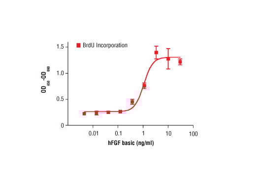 | Activity | The bioactivity of recombinant hFGF basic was determined in a NIH/3T3 cell proliferation assay. The ED50 of each lot is between 0.2 - 1.0 ng/ml. |