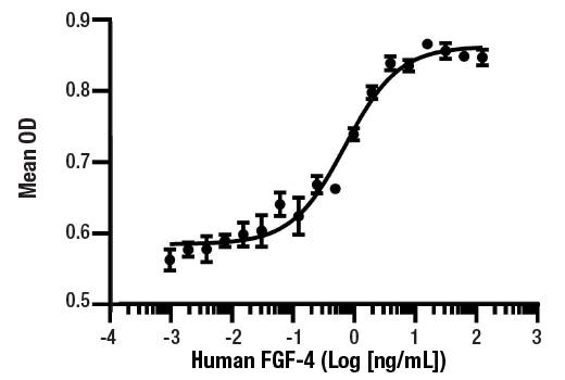 Activity The bioactivity of recombinant hFGF-4 was determined in an NR6R-3T3 cell proliferation assay. The ED50 of each lot is less than or equal to 5 ng/mL.