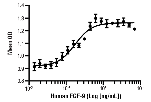 | Activity | The bioactivity of recombinant hFGF-9 was determined in an NR6R-3T3 cell proliferation assay. The ED50 of each lot is less than or equal to 2 ng/ml. |