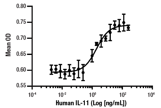 | Activity | The bioactivity of recombinant hIL-11 was determined in a TF-1 cell proliferation assay. The ED50 of each lot is less than or equal to 10 ng/ml. |
