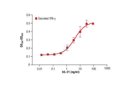 | Activity | The bioactivity of recombinant hIL-21 was determined by its ability to induce IFN-γ production by NK-92 cells. The ED50 of each lot is between 1.0-6.0 ng/ml. |