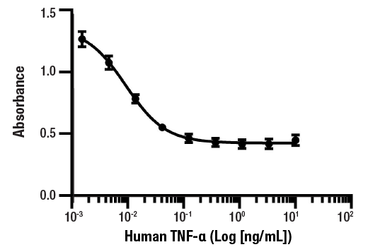 | Activity | The bioactivity of recombinant hTNF-α was determined in a cell proliferation assay measuring the cytolysis of mouse L929 cells in the presence of Actinomycin D. The ED50 of each lot is less than or equal to 2 ng/mL. |