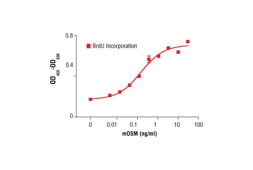 | Activity | The bioactivity of recombinant mOSM was determined in a NIH/3T3 cell proliferation assay. The ED50 of each lot is between 0.10-0.40 ng/ml. |