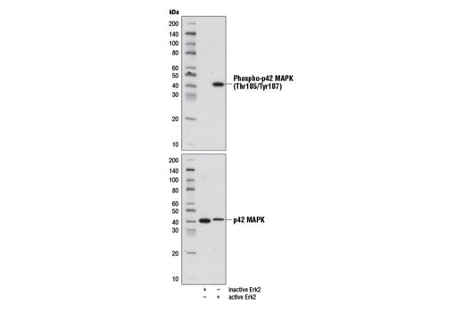 Phosphorylated MAP Kinase Control Protein: Fully phosphorylated Erk2 protein serves as a positive control for western blotting experiments. MAP kinase is phosphorylated by MEK and purified free of nonphosphorylated MAP kinase. Molecular weight of MAP kinase (Erk2) protein is 42 kDa. Supplied in SDS Sample Buffer.