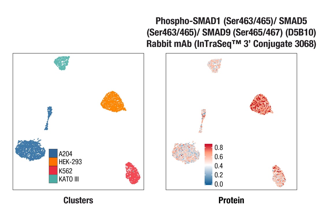 Phospho-SMAD1 (Ser463/465)/ SMAD5 (Ser463/465)/ SMAD9 (Ser465/467) (D5B10) Rabbit Monoclonal Antibody (InTraSeq™ 3' Conjugate 3068) #30714