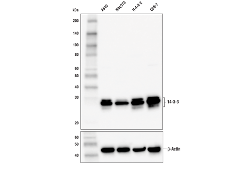 14-3-3 (pan) (E9S9M) Rabbit Monoclonal Antibody recognizes endogenous levels of total 14-3-3 protein. This antibody detects all known isoforms of mammalian 14-3-3 proteins (β/α, γ, ε, η, ζ/δ, θ/τ and σ).