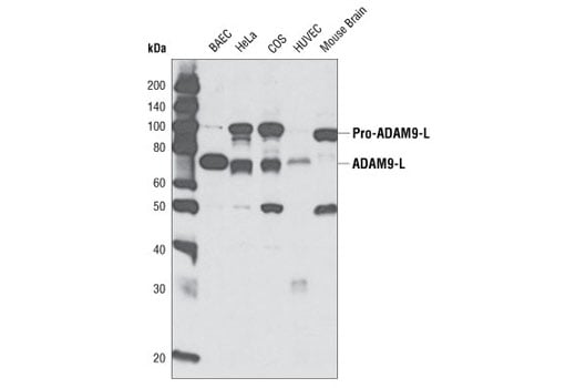 | MW (kDa) | 100 pro-ADAM9-L, 80 ADAM9-L |