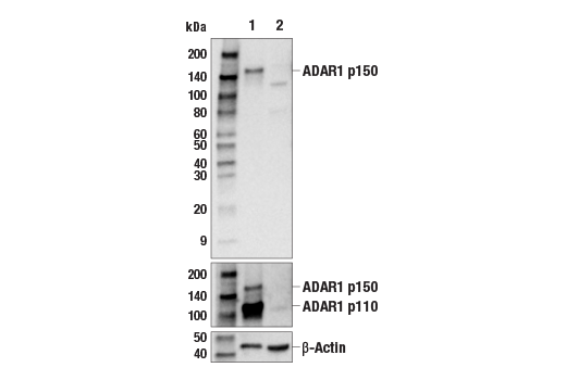 ADAR1 p150 Isoform Antibody recognizes endogenous levels of total ADAR1 p150 protein. This antibody does not detect ADAR1 p110 protein, but may detect a nonspecific band around 120 kDa.