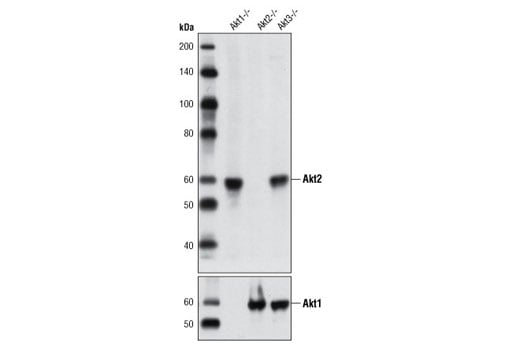 Akt2 (L79B2) Mouse Monoclonal Antibody detects endogenous levels of total Akt2 protein. This antibody does not cross-react with Akt1 or Akt3.