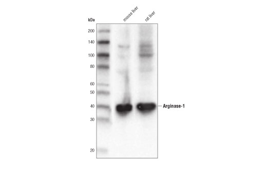 Arginase-1 (D4E3M) Rabbit Monoclonal Antibody recognizes endogenous levels of total arginase-1 protein. This antibody does not cross-react with arginase-2.
