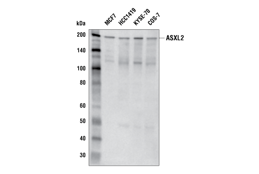 ASXL2 (E6Z3X) Rabbit Monoclonal Antibody recognizes endogenous levels of total ASXL2 protein.