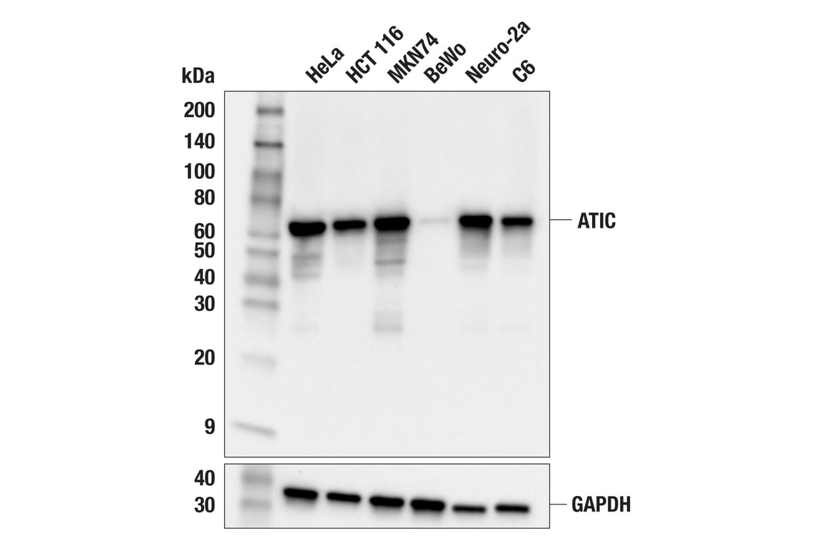 ATIC (F6Z3O) Rabbit Monoclonal Antibody recognizes endogenous levels of total ATIC protein.