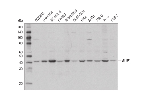 The antigen sequence used to produce this antibody shares 100% sequence homology with the species listed here, but reactivity has not been tested or confirmed to work by CST. Use of this product with these species is not covered under our Product Performance Guarantee.