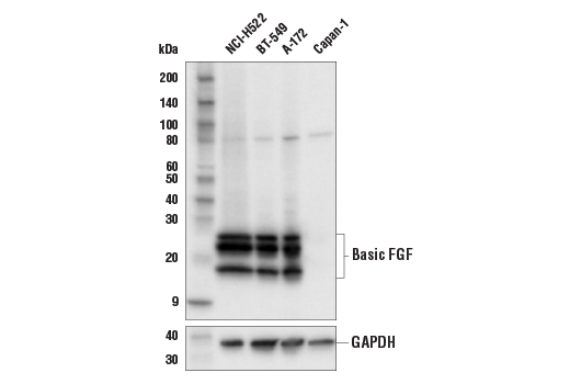 Basic FGF (E9S5A) Rabbit Monoclonal Antibody recognizes endogenous levels of total basic FGF protein.